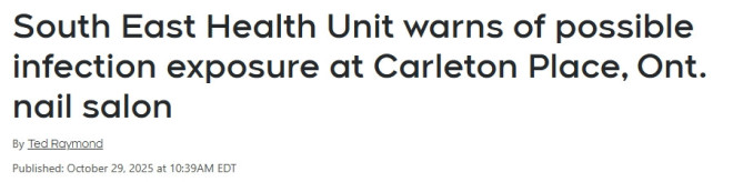 安省东南地区公共局(South East Health Unit)警告,Carleton Place居民可能在一家当地美甲店接触到血源性传染病风险。