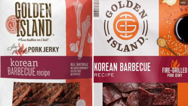 此次召回涉及Golden Island品牌韩式烧烤风味火烤猪肉干(Korean Barbeque Recipe Fire-grilled Pork Jerky)。