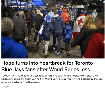 對於全國數以百萬計被藍鳥季後賽征程團結起來的球迷來說,看到球隊時隔 32 年再度奪冠的希望破滅,讓人心碎。