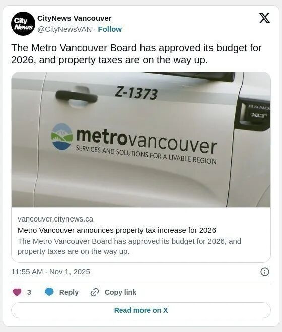 这不,最新消息来了,明年的大温地税要涨,平均每户要多交897。