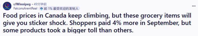 坚果和种子价格9月份同比上涨15.7%,干果价格也上涨10.9%。混合坚果包现在成了奢侈品——Loblaws一袋要18加元。