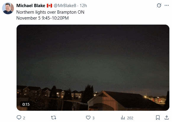 甚至有人竟能在Brampton居民区拍到微弱的极光。