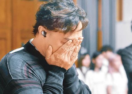 陳奕迅與管弦樂團合作,感動得掩面流淚。