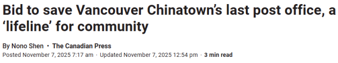 加拿大邮政宣布关闭唐人街唯一邮局!华人发起请愿:这是社区命脉