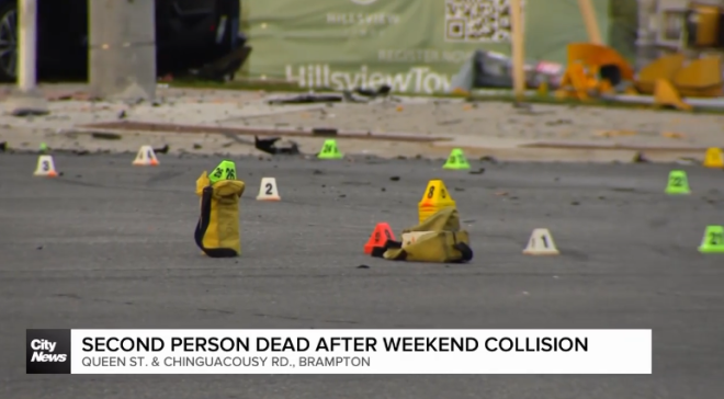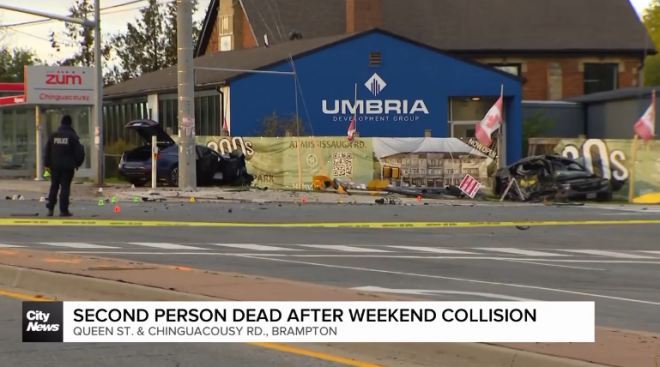 在11月1日凌晨发生的这起事故后,人们在Queen街与Chinguacousy路交汇处附近摆放了鲜花、留言和遇难者照片。