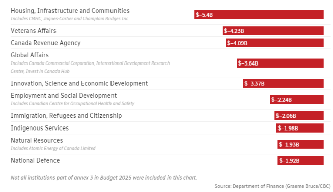 说完此次联邦预算案对普通民众的影响,最后来说说国家层面的 —— 为了提高效率、缓解赤字,联邦政府在多个领域计划削减开支,如图所示: