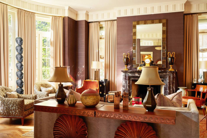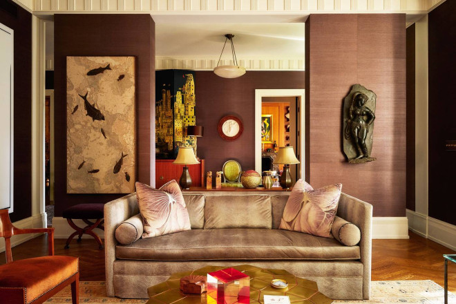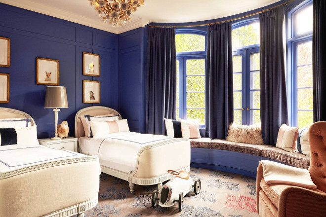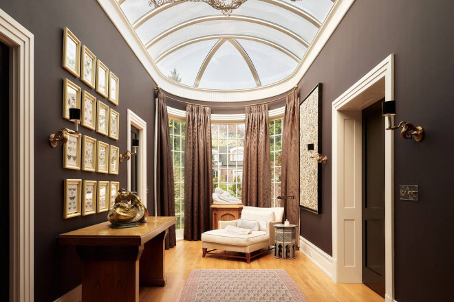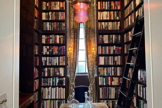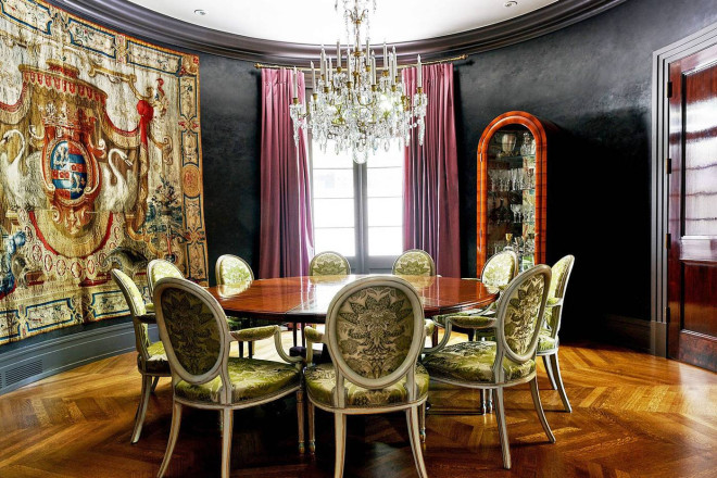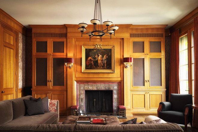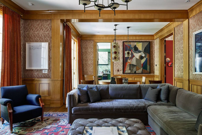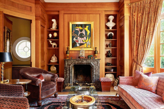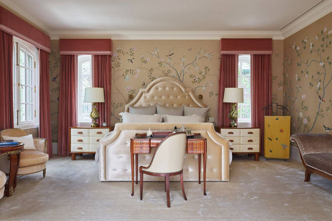 就连一些细节之处也体现了设计爱好者的梦想:Scalamandré 丝绸墙面、定制的 Nanz 五金件以及厚度超过两英寸的手工打蜡红木门。