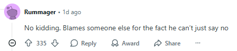 另一位网友也认为帖主有问题:“没开玩笑。明明就是他自己不会拒绝,还怪别人。”