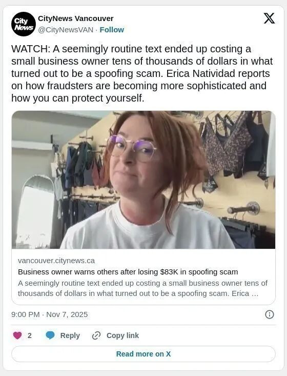 法罗·麦肯齐(Farro Mackenzie)从未想过自己会成为网络钓鱼的受害者。这位来自BC省的小企业主表示,一切都始于她收到一条自以为是发来的短信,要求她验证一笔交易。