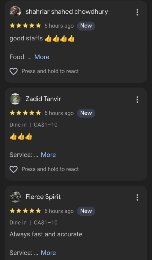 这位网友在帖子里写道:“这家店位于多伦多的335 Parliament Street。他们最近一直顶着很大的舆论压力,差评也一堆。就在昨天,他们突然刷了一大堆虚假好评。”