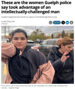 安省圭爾夫最近發生了一起無恥的誘騙案:兩名女“丐幫”誘騙一名試圖幫助她們的弱勢男子,不僅大肆購物,還索要現金,直至好心人的卡刷爆上限!
