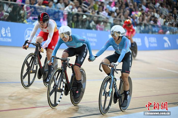 16日下午,在场地自行车女子麦迪逊赛中,李思颖/梁颖仪组合以45分的绝对优势,为东道主香港队摘得本届全运会场地自行车项目的首枚金牌、本届全运会第六枚金牌。