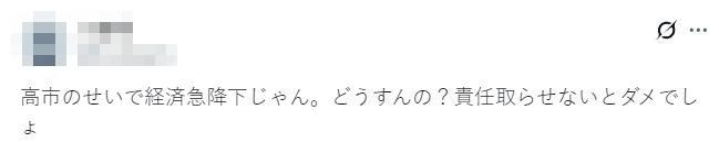 有日本民众在社交媒体上写道,“都是高市的错,经济急剧下滑。这可怎么办?必须让她承担责任才行吧。”