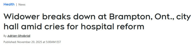 他说:“Credit Valley医院的一桩悲剧也许无法引起省府的关注,但我们希望借此提高公众意识,把这个悲剧放到医疗体系讨论中,从而修补系统漏洞。希望其他城市也能效仿布兰普顿的动议,共同呼吁修复我们医疗系统中的这一缺口。”
