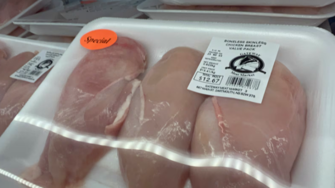 肉类柜台依旧是超市中最昂贵的区域。多名购物者向CTV新闻表示,作为全国厨房常备食材的鸡肉,价格已成为最大不满点。