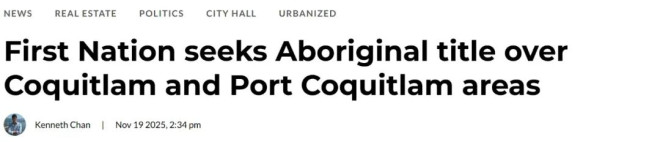 其实高贵林港这起案子并不是突然冒出来的“新闻炸弹”。Kwikwetlem(夸夸特勒姆)原住民早在2016年就已经向法院提出诉求,主张对高贵林东南、以及高贵林港西南多块大面积土地拥有原住民所有权。只是这几年Cowichan、Haida、Secwepemc等案件陆续曝光后,大家神经紧绷,这起“沉底十年”的老案子才被重新翻出来。