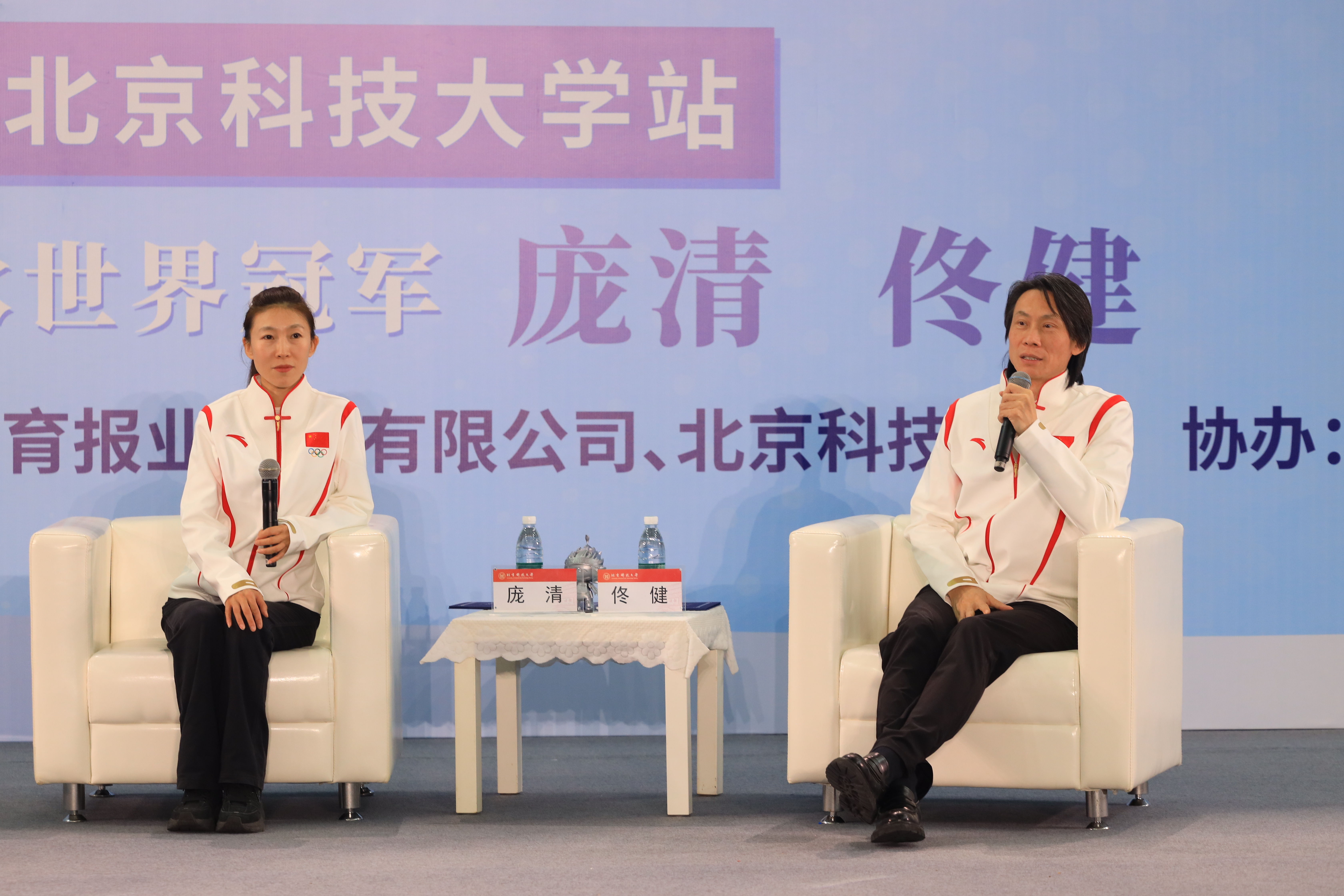 本次活动由国家体育总局宣传司主办,中国体育报业总社有限公司、北京科技大学承办,中国体育报、新体育网协办。“中华体育精神大讲堂”校园宣讲环节以“面对面访谈”形式展开,庞清、佟健分享了自己从与冰雪结缘到站上奥运领奖台的追梦历程。