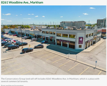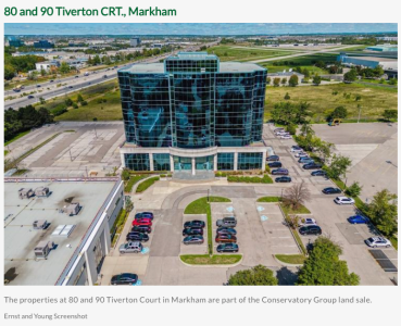 該地塊包括兩棟兩層和一棟八層辦公樓,毗鄰萬錦已經關閉的巴頓維爾機場( Buttonville Airport),康Conservatory Group 集團總部曾設於此。