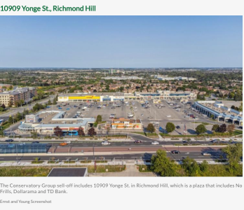 這個位於列治文山Yonge街10909號的Plaza零售購物廣場,占地超過20萬平方英尺,包括No Frills超市、TD銀行和Dollarama美元商店等租戶。