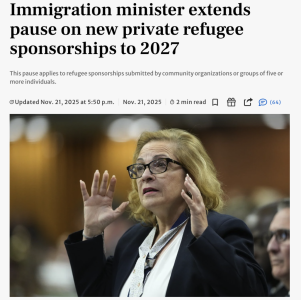“這是對難民的殘酷打擊。政府去年承諾凍結一年,現在卻繼續拖延……他們正在背離加拿大人慷慨、負責任的價值觀。”