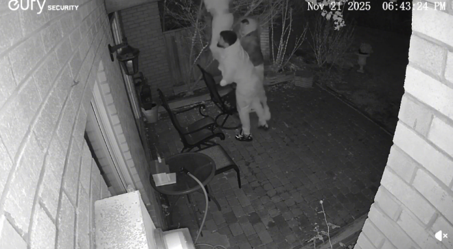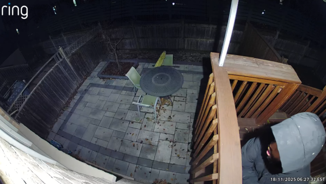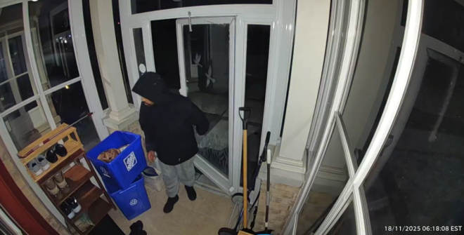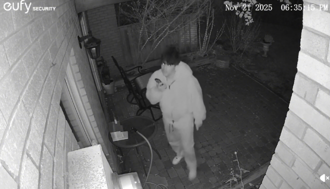 屋主说:“幸运的是,我安装了电子锁和监控摄像头,一直在密切关注着一切。事件发生在清晨,第一次(手机/门铃)提醒响起时,我还在熟睡中,但我又听到了第二次提醒,这时我才看到他已经站在我家后院门口,手好像就在门把上。我没看到他拿工具,但他明显是在寻找入口点。”