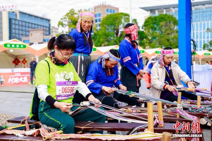 此外,村跑大集设置了100个特色展位,集中展销富川腊味、脐橙等地理标志产品。现场还设有非遗手作、农耕文化遗产展示及瑶医技法体验区,游客可参与瑶锦编织、瑶族扎龙等传统技艺互动。