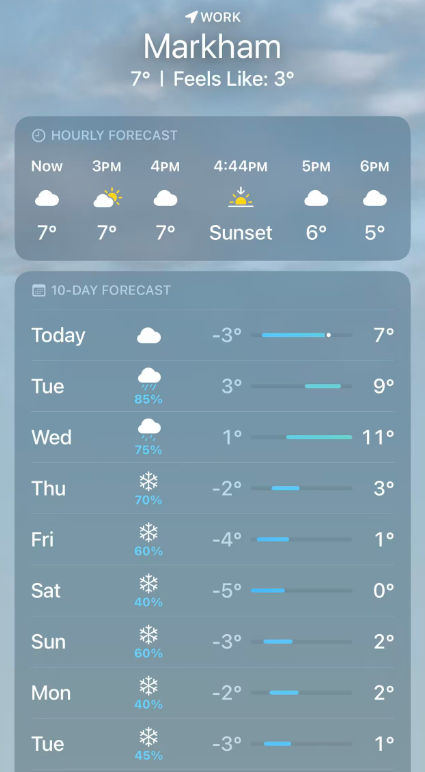 万锦的小伙伴如果打开手机预报,肯定会被吓一跳:周二开始下雨,周四开始下雪,一直下到下周二,气温也随之骤降…冬天真的来了!