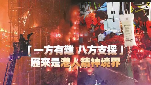 一方有難,八方支援,歷來是港人的精神境界。火警發生後,社會各界積極伸出援手,提供一切可行協助,一起來幫助受難者家屬以及受困者。多個政團即時宣布暫停選舉拉票,第一時間派員前往現場支援,表示會全面回應受影響居民的需要,包括心理輔導及經濟援助,共同攜手渡過難關,體現團結一心、守望相助的溫暖力量,彰顯社會的溫情與擔當。