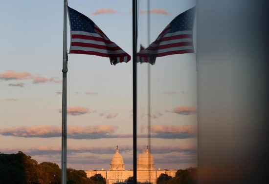 这是10月8日在美国华盛顿拍摄的日落时分的国会大厦。新华社记者李睿摄