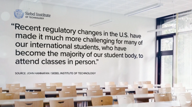 “美国最近的监管变化让我们许多国际学生——他们现在已经占了我们大多数学生——更难亲自来上课,”学院教育总监John Hannafan写道。“把北美的课堂业务搬到蒙特利尔,可以让我们及时调整,又不会影响学生的上课体验。”