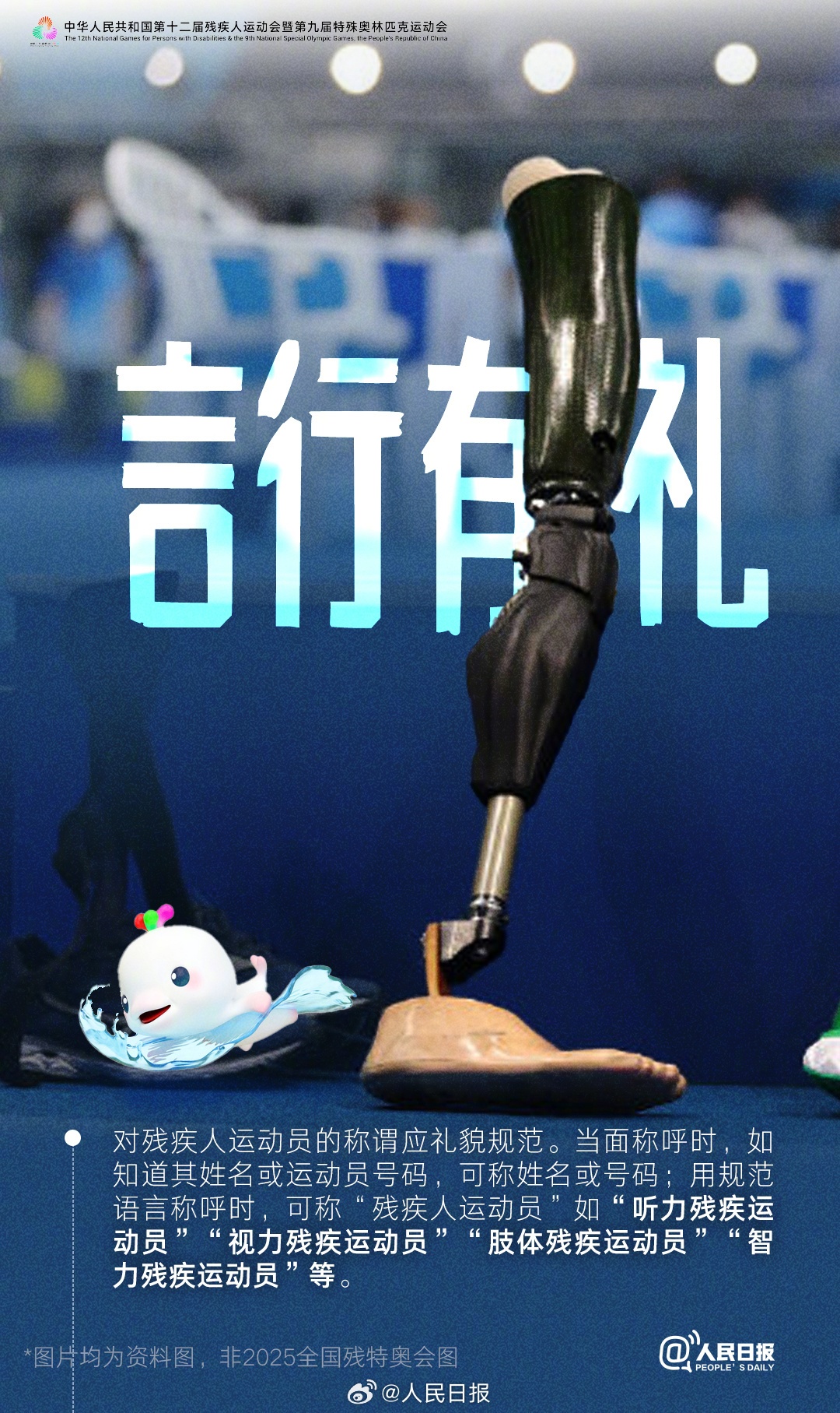 残特奥会即将开幕,这些观赛礼仪你知道吗? 发布: 2025-11-29 2025全国残特奥会即将开幕,你知道观赛的基本礼仪吗?哪些项目需要保持安静?哪些时刻可以鼓掌喝彩?登场时,用掌声致敬勇气;拼搏时,用目光凝聚支持;胜利时,用拥抱传递感动。一起,为拼搏喝彩! (人民日报微博) 【编辑:曹子健】 免责声明:本文仅代表作者个人观点,与华侨网无关联。其原创性及文中陈诉内容未经本网证实,对本文内容、文字的完整、真实性,以及时效性本网部作任何承诺,请读者自行核实相关内容。如发现稿件侵权,或作者无意愿在华侨网发布文章,请版权拥有者通知华侨网处理。