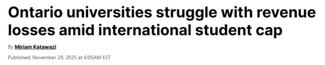 联邦政府于2024年1月宣布削减并封顶国际学生数量,导致全省多所大学和学院面临招生和收入危机。