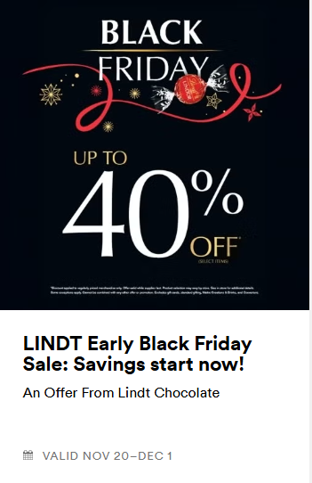 Lindt巧克力:最高40%OFF。节日送礼可以囤。