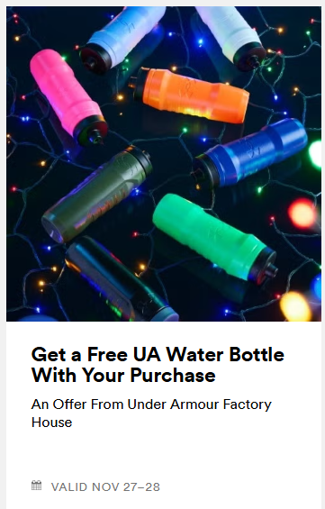 Under Armour:全场40-50%OFF,任意消费即可获赠一个UV水杯。