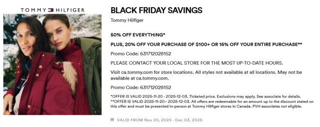 Tommy Hilfiger:全场50%OFF。叠加折扣码“631712028152”再额外15% OFF,或消费满$100额外20%OFF 。几乎半买半送。
