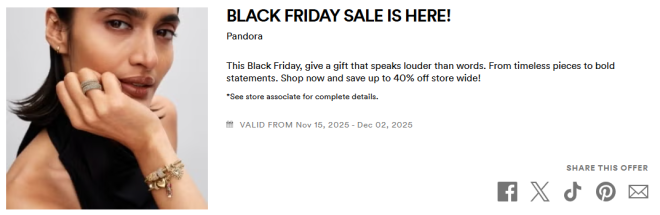 Pandora:全场最高40%OFF,爱戴小珠子的姐妹可以冲。