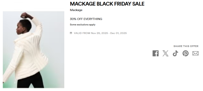 Mackage:全场30%OFF!羽绒服界的狠货!