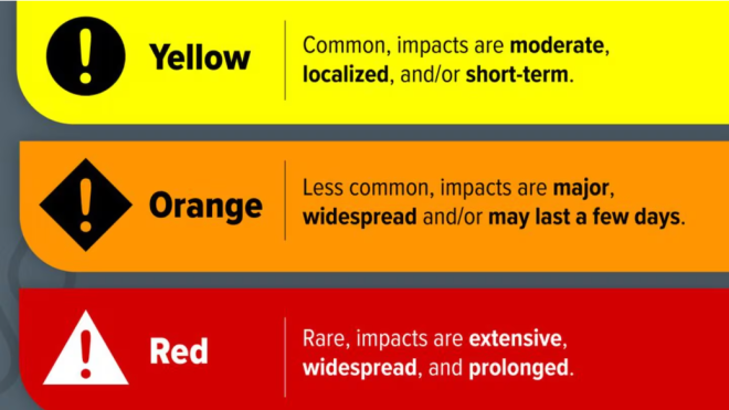 加拿大环境部表示,多伦多、密西沙加和宾顿预计将再遭2至4厘米降雪,并有时速可达70公里的阵风;而万锦及杜兰区部分地区则在新的彩色警报系统下收到单独的黄色降雪警告。