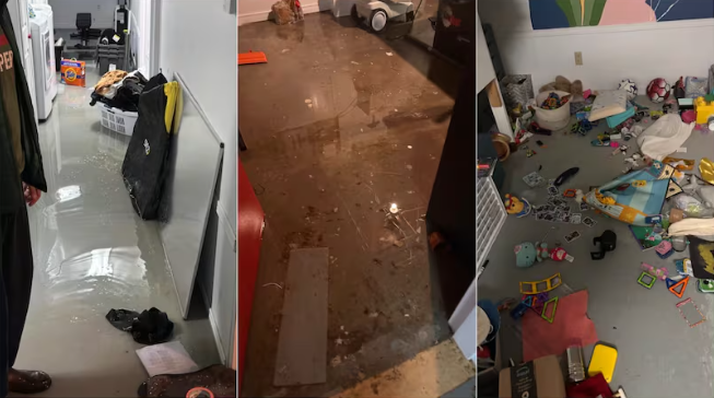 “水到处流,整个厨房都在淌水……地下室大概有三英寸深的水,从这头淹到那头。”她说。