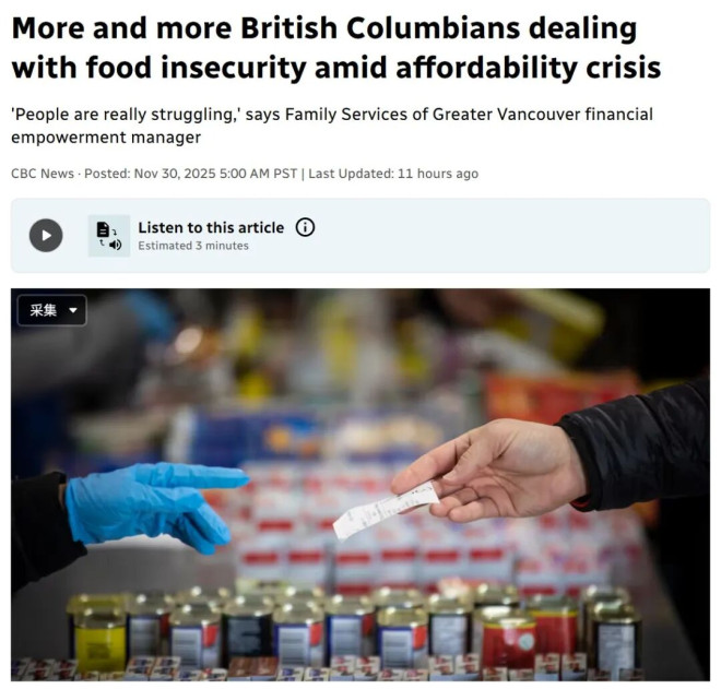 卑诗省不安全问题持续恶化,生活成本高企下,各类居民求助食物银行人数攀升!