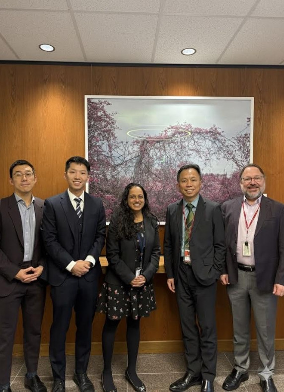香港驻多伦多经济贸易办事处处长王国彪(右二)十二月一日到访加拿大环球事务部,与该部大中华分部总监Shamali Gupta(中)及团队合照。