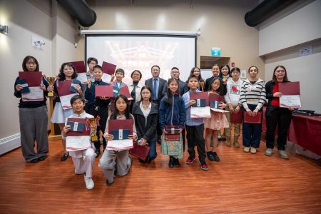 【時報訊】11月30日,領區首屆“世界聽我說”中文演講大賽決賽成功舉辦,戴玉明總領事、魁北克省國民議會議員加爾索出席活動並致辭,參賽選手及家長共100餘人參加活動。