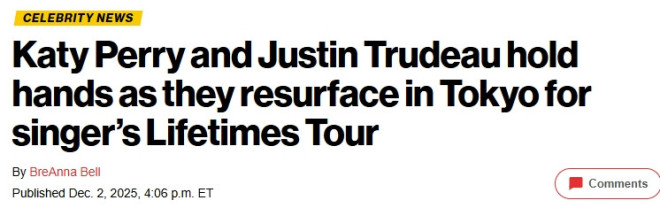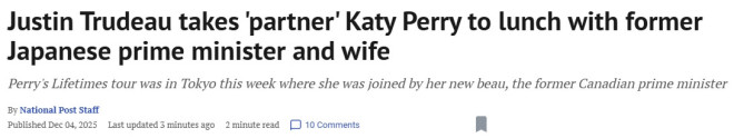 前加拿大总理(Justin Trudeau)与美国流行歌手凯蒂·佩里(Katy Perry)本周在东京,与前首相岸田文雄(Fumio Kishida)及其妻子裕子(Yuko)共同用餐。