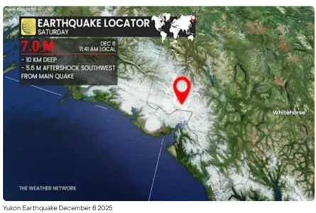 Bird 指出,距離震中最近的加拿大社區是海恩斯章克申(Haines Junction),相距約 130 公里。