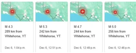 許多住在懷特霍斯(Whitehorse)的居民已經在社交媒體上刷屏,表示明顯“感覺到了劇烈的晃動”。