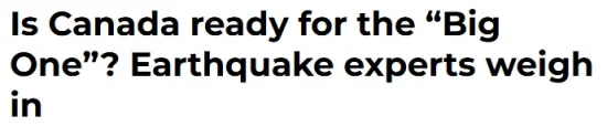 作為參考,加拿大歷史上觀測到的最大地震是1700年1月發生在BC省外海的“卡斯卡迪亞地震”(Cascadia Earthquake),當時的預估震級為9.0級。