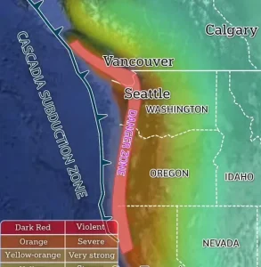 研究顯示,卡斯卡迪亞俯衝帶最危險的區域位於溫哥華島南部,約每200至800年就會發生一次毀滅性地震。