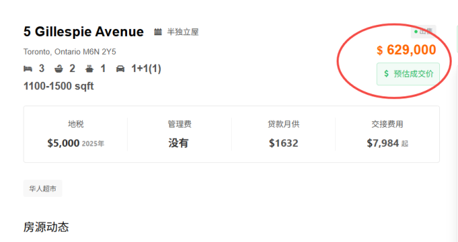 为了让大家对这栋房子有个概念,这个社区的半独立式住宅平均售价在 785,000 元到 127 万元之间,这意味着这栋房子的价格足够低,以至于你的大脑开始低语:“也许它并没有那么糟糕?”