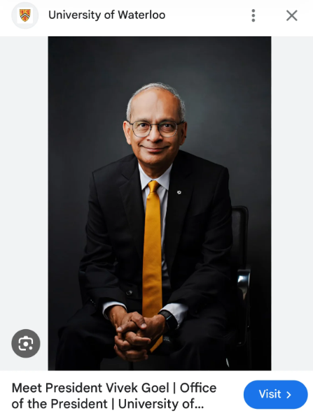 有网友纠正帖中错误说:他不是校长,是校监 (Chancellor)。滑铁卢大学校长是这位Vivek Goel (维韦克·戈埃尔)。