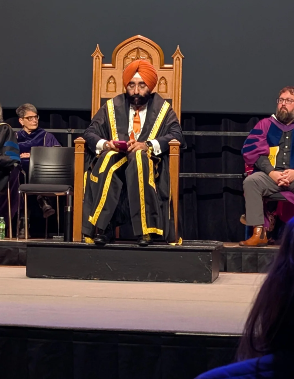 “这是在10月底文学院毕业典礼上,校长贾格迪普·辛格·巴赫尔在典礼期间打电话的照片。极其不尊重。此前,他花了整整 15 分钟时间朗读自己的LK的个人资料,吹嘘自己在加州管理数十亿美元的项目…, 之后就开始全程刷手机了”。
